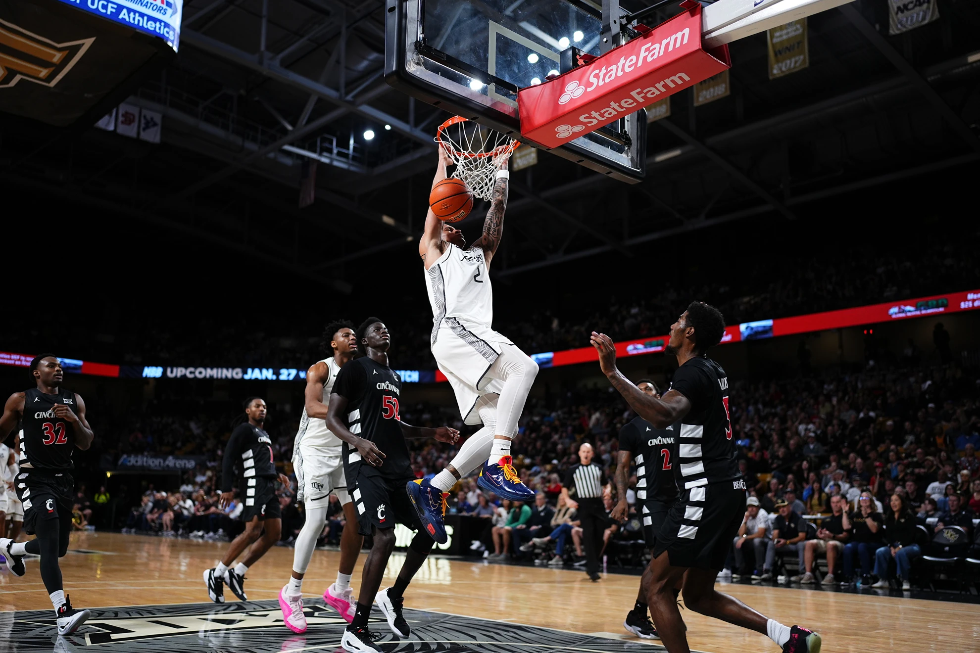 The rivalry was also intense inside Addition Financial Arena as Knights’ fans booed Cincinnati center Moustapha Thiam every time he had possession of the ball, remembering his alleged controversial exit from UCF in April 2025.