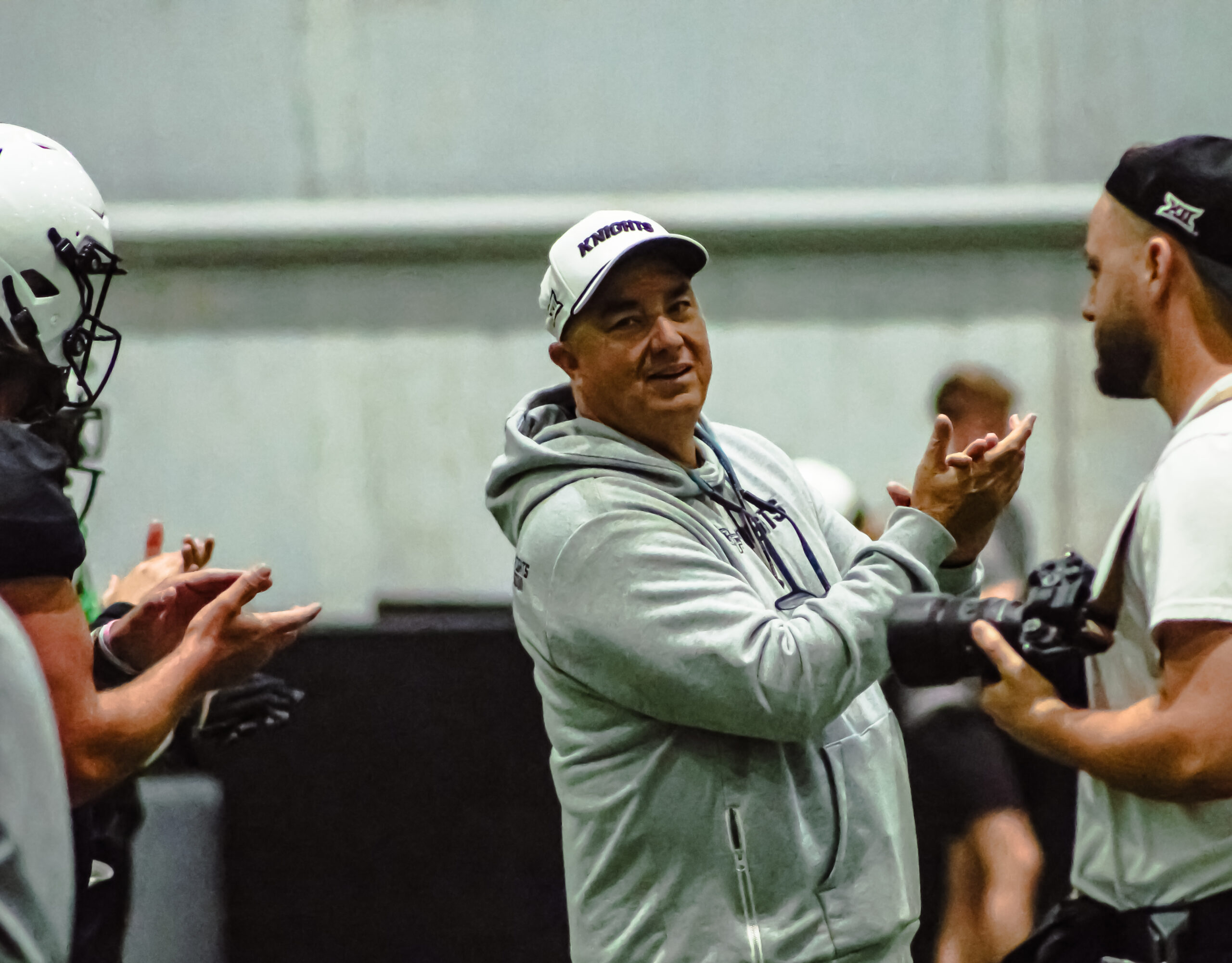 Offensive line coach AJ Blazek is setting the tone for the Knights’ o-line, a group that struggled last year in penalties. Blazek brings along several years of offensive line coaching experience at the Power 4 level and more than two decades of coaching experience all around. Under his first season with the Knights, Blazek looks to veteran players to set examples for newcomers and younger players.